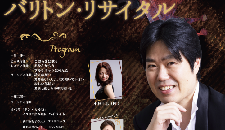 『第九』はもとより、モーツァルト・フォーレ・デュルフレ『レクイエム』などのバリトン・ソロ、大阪フィルハーモニー交響楽団、関西フィルハーモニー、大阪交響楽団、京都フィルハーモニー室内合奏団など関西主要オケとの共演、ソロリサイタル、デュオリサイタル、おしゃべりクラシックシリーズ、各種コンサート等活動の場を広げ、今後の活躍が期待されている。
